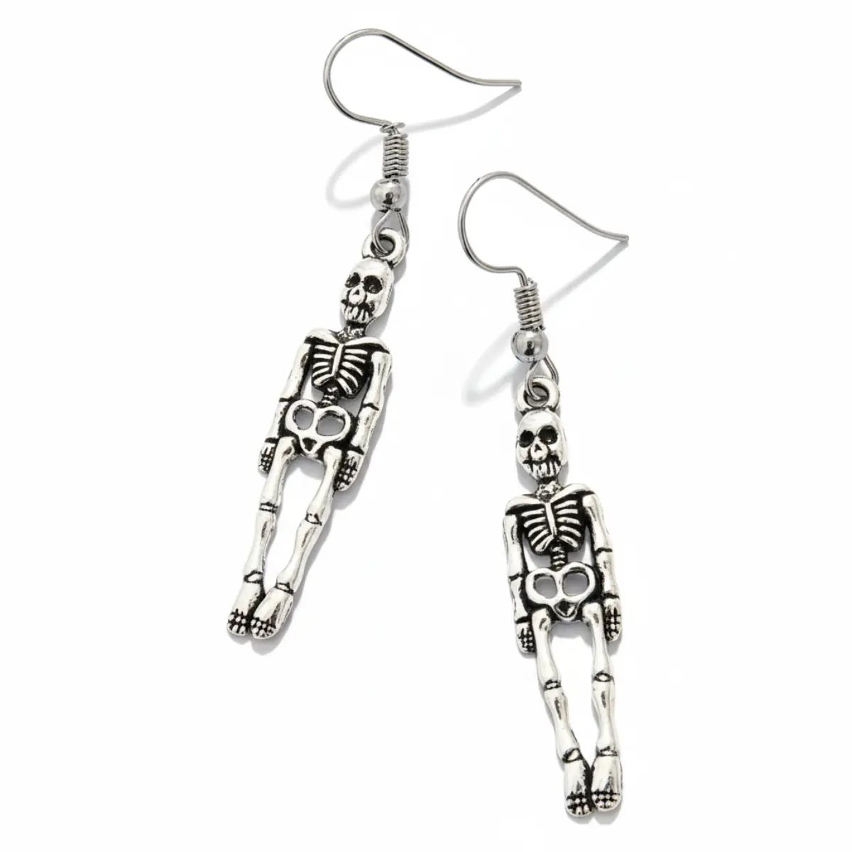 Dangling Skeleton Earrings showcase zinc alloy silver skeleton dangles for lightweight, edgy feminine style and everyday wear.